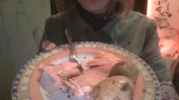 extremely left-over salmon, potatos, and radio.dangeru.us for breakfast, having spent the whole night in front of computer, working on my homepage and just kinda vibing.